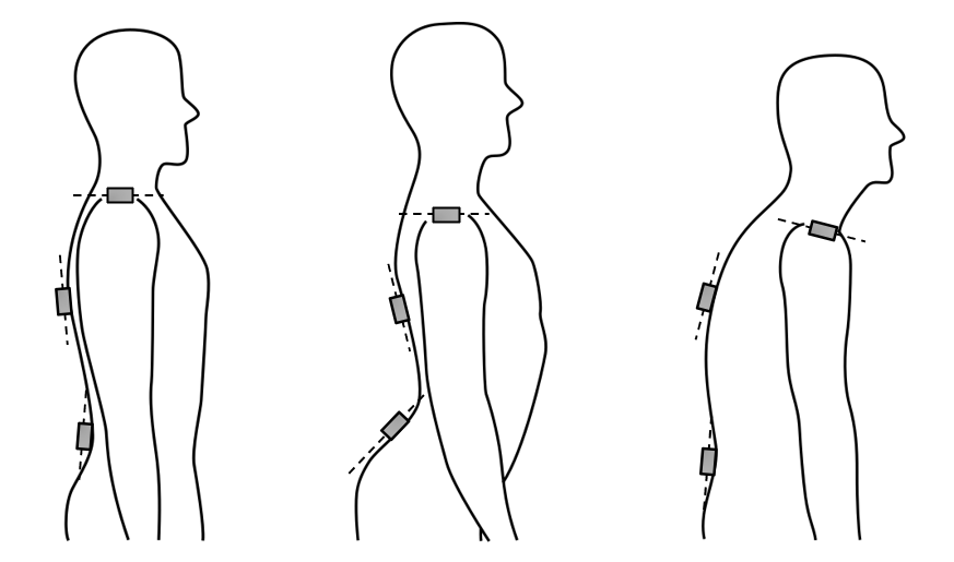 With strategically placed sensors, the posture of the upper body can be measured. An algorithm processes this information and keeps track of the posture over time. When necessary, the system will vibrate to give you feedback about your posture. Through an app on your phone, it is possible to track your ‘postural performance’.